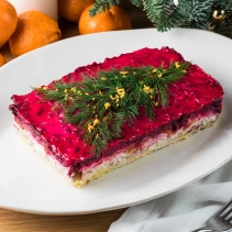 Рыба сельдь олюторская, свекла, морковь, лук красный, картофель, яйцо куриное, маойнез хелманс
