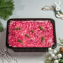 Классическая сельдь под шубой из отварной свеклы, моркови, куриного яйца, отварного картофеля и сельди