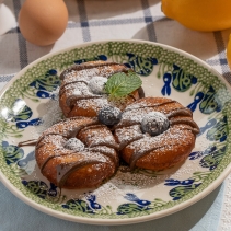 Пончики с нутеллой, сахарной пудрой и голубикой
