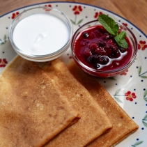 Домашние блины со сметаной и ягодным соусом