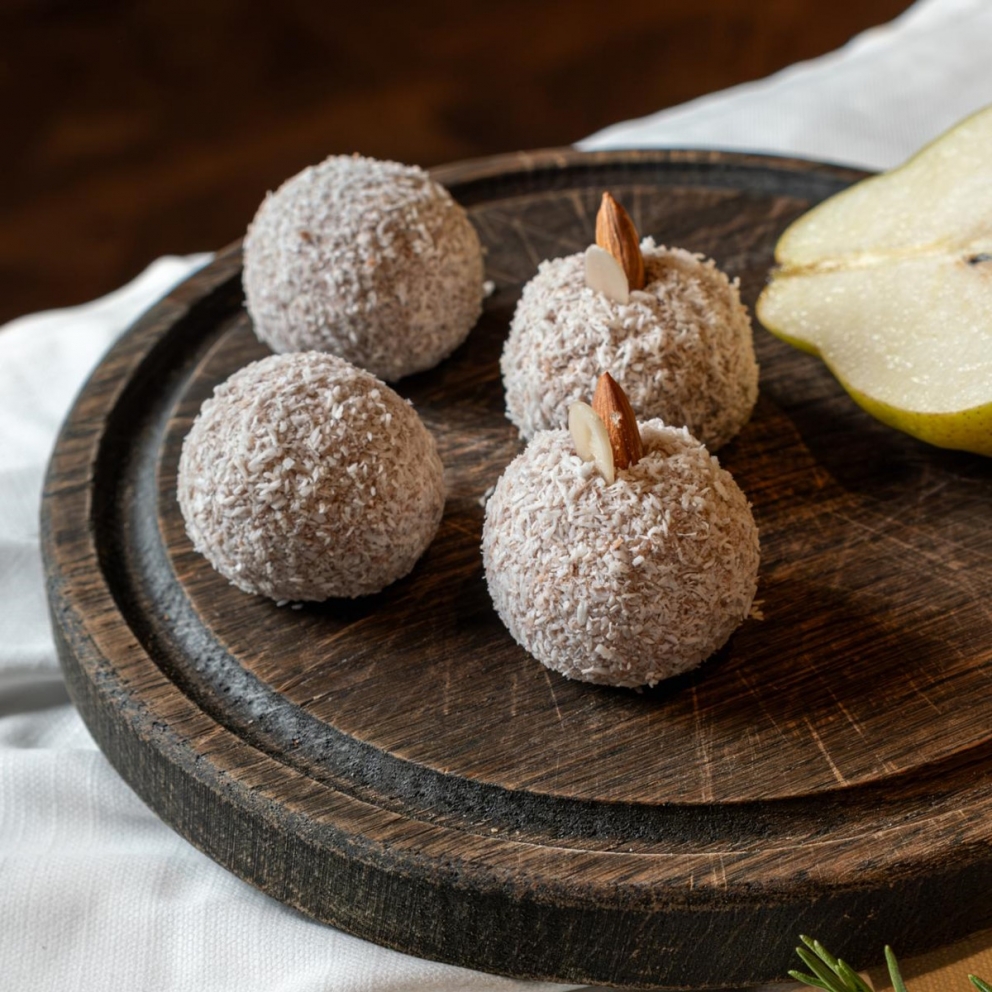 Нежный шарик из Рикотты в итальянском стиле с нежной текстурой, сладким послевкусием банана с добавлением кокосовой стружки
