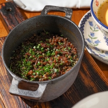 Рассыпчатая ароматная гречка с томленым утиным филе и свежим зеленым луком