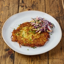 Картофельный драник с салатом из красной капусты и свежих овощей