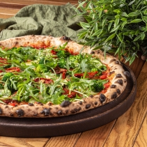 Тесто пицца (мука пшеничная в/с, вода, дрожжи, соль морская), соус пицца (помидоры в собственном соку, базилик зеленый, соль морская, масло оливковое), кабачки, капуста брокколи бланшированная), помидоры вяленые (помидоры, чеснок, масло оливковое, соль морская, сахарная пудра, тимьян, орегано, перец черный), шпинат свежий, мука для пиццы пшеничная в/с, салат рукола, масло оливковое, соль морская, перец черный