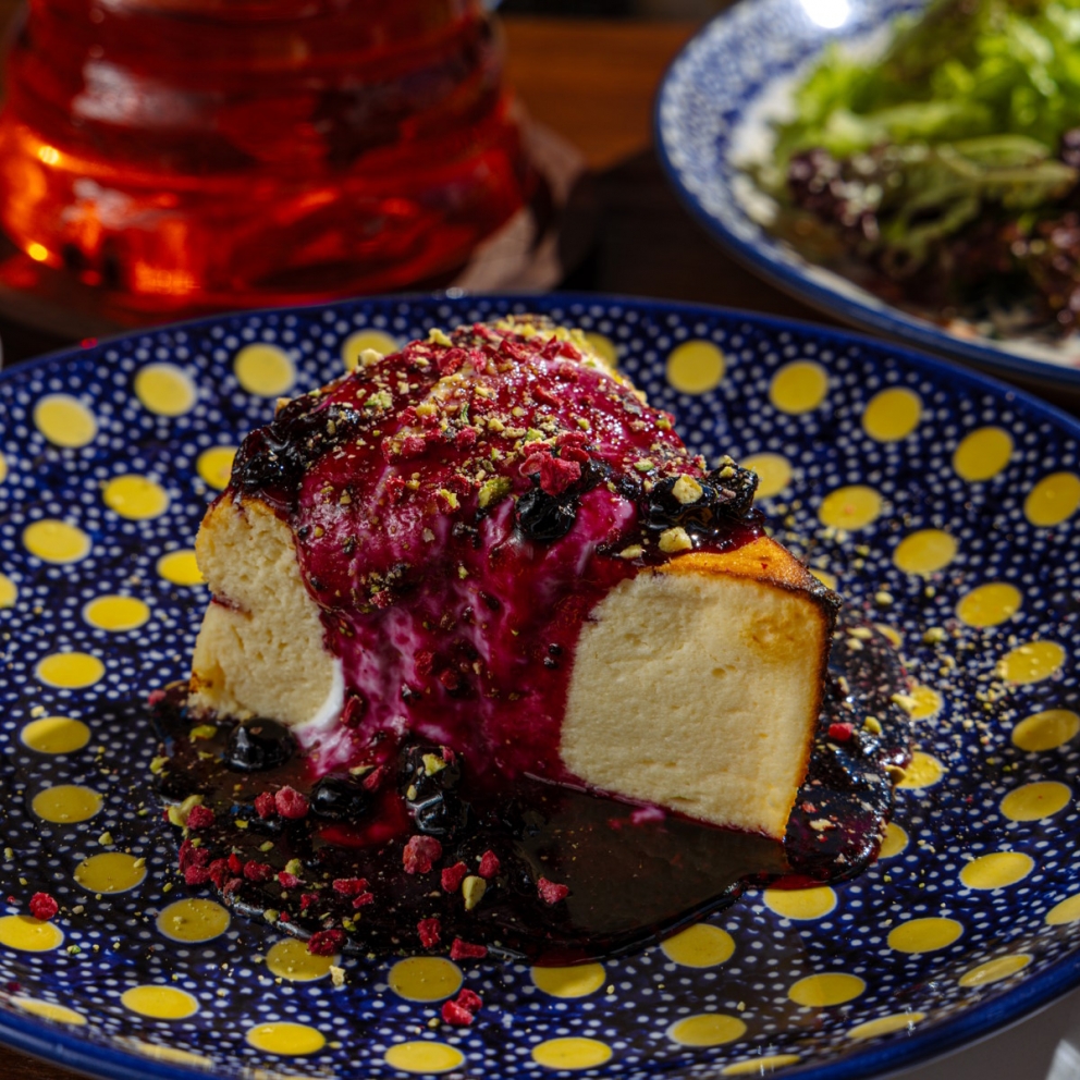 Нежная творожная запеканка с вареньем из черной смородины
