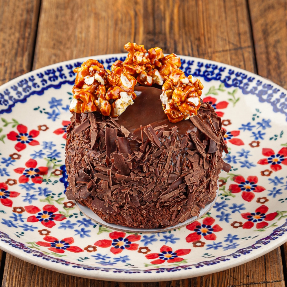 Бананы, бисквит выпеченный (яйцо куриное, шоколад каллебаут 54%, масло сливочное 82,5%, сахар песок, белок куриный), крем сырный (сливки 35%, сыр креметте, сахар песок), ганаш карамельный (сливки 35%, сахар песок, шоколад каллебаут молочный 33,6%, сироп глюкоза, соль морская), шоколад каллебаут 54%, сахар тростниковый, попкорн в карамели (сахар песок, попкорн (кукуруза в зернах), масло сливочное 82,5%, сода пищевая, соль экстра)