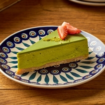 Миндальная мука, фисташковая мука, белок пастеризованный, желатин, сливки 33%, сахар, белый шоколад, креметте, фисташковая паста, свежая клубника, сливочное масло, яйцо, пшеничная мука, изумрудная фисташка
