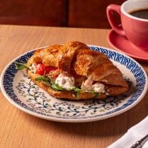 Круассан с креветками, руколой и болгарским перцем