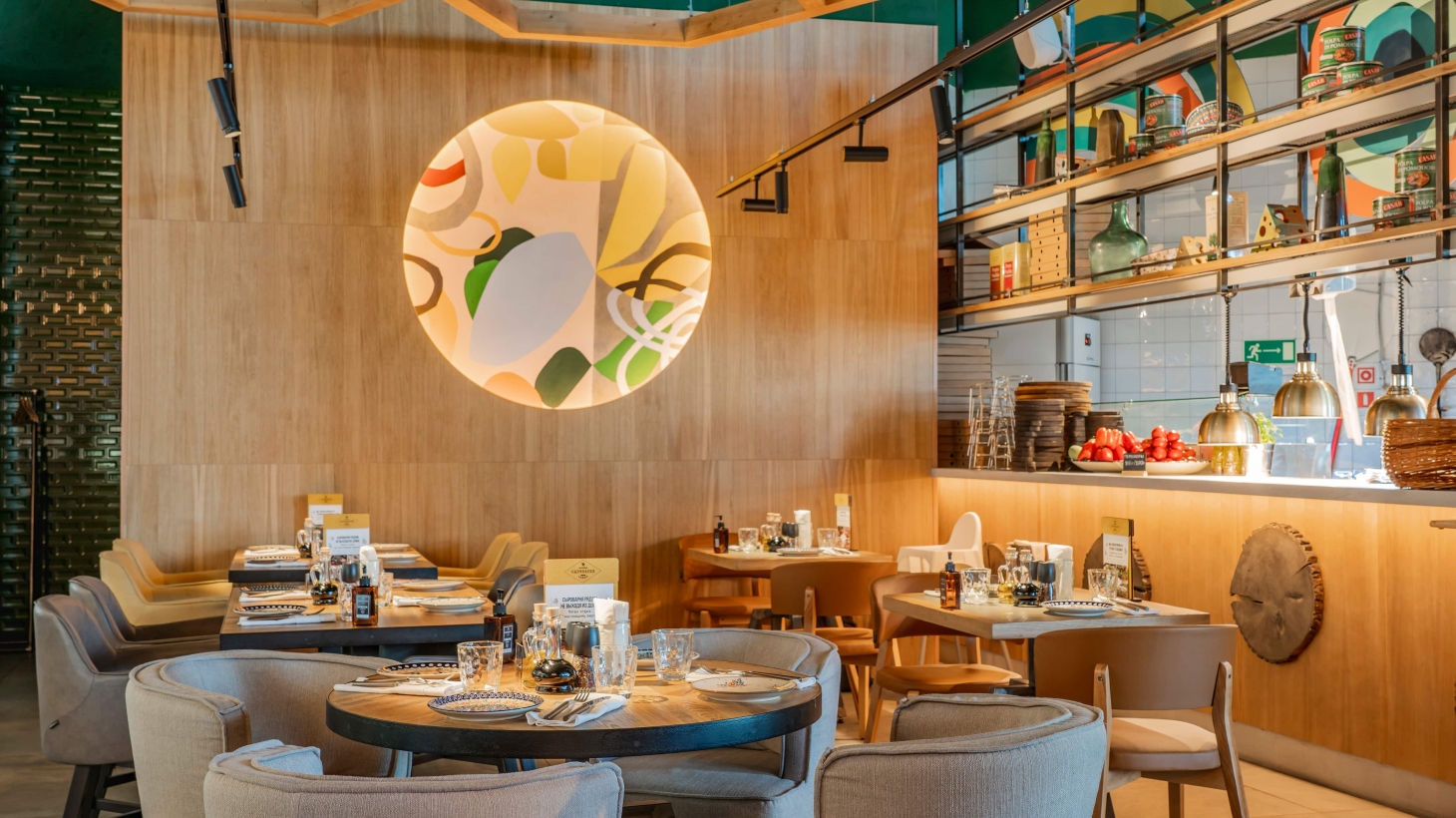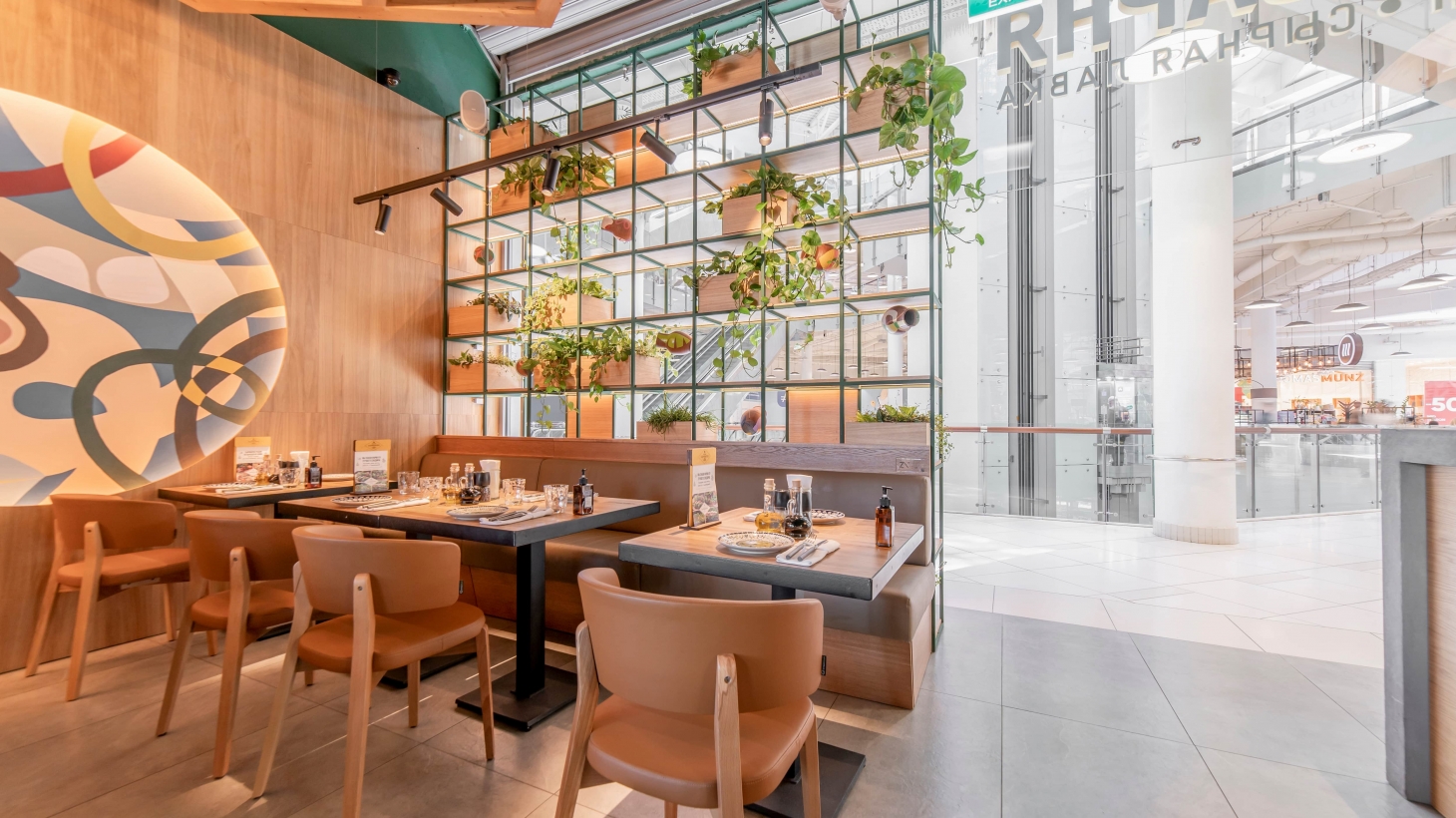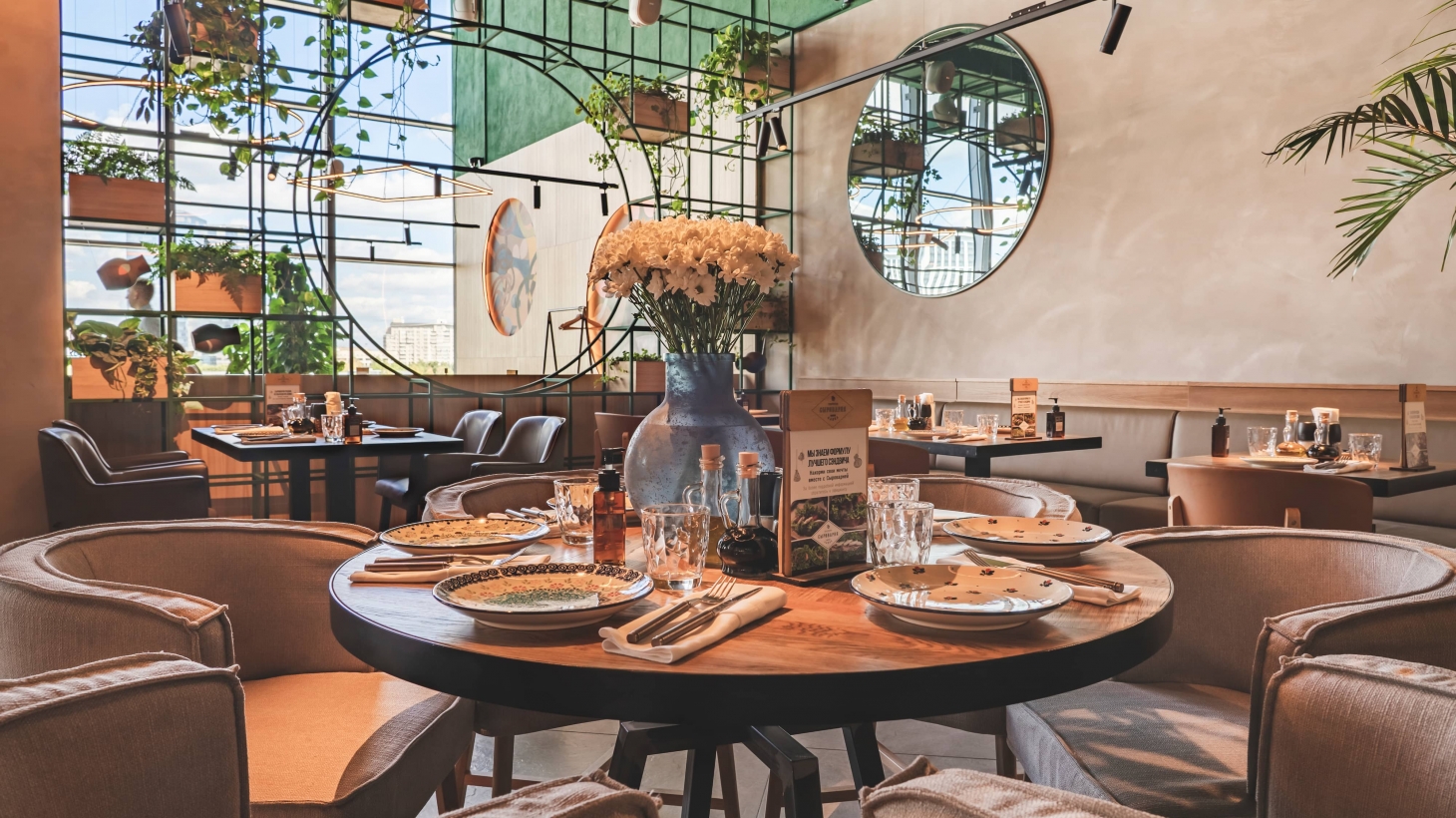 Arkady Novikov's family restaurant, opened in the spring of 2022, is located on the first floor of Aviapark shopping and entertainment centre. The menu includes a variety of pasta, pizza, cheese, meat, fish and grilled dishes. Breakfast is served in the mornings. Light colours and lots of greenery dominate the interior. The restaurant is flooded with natural light from the panoramic windows.