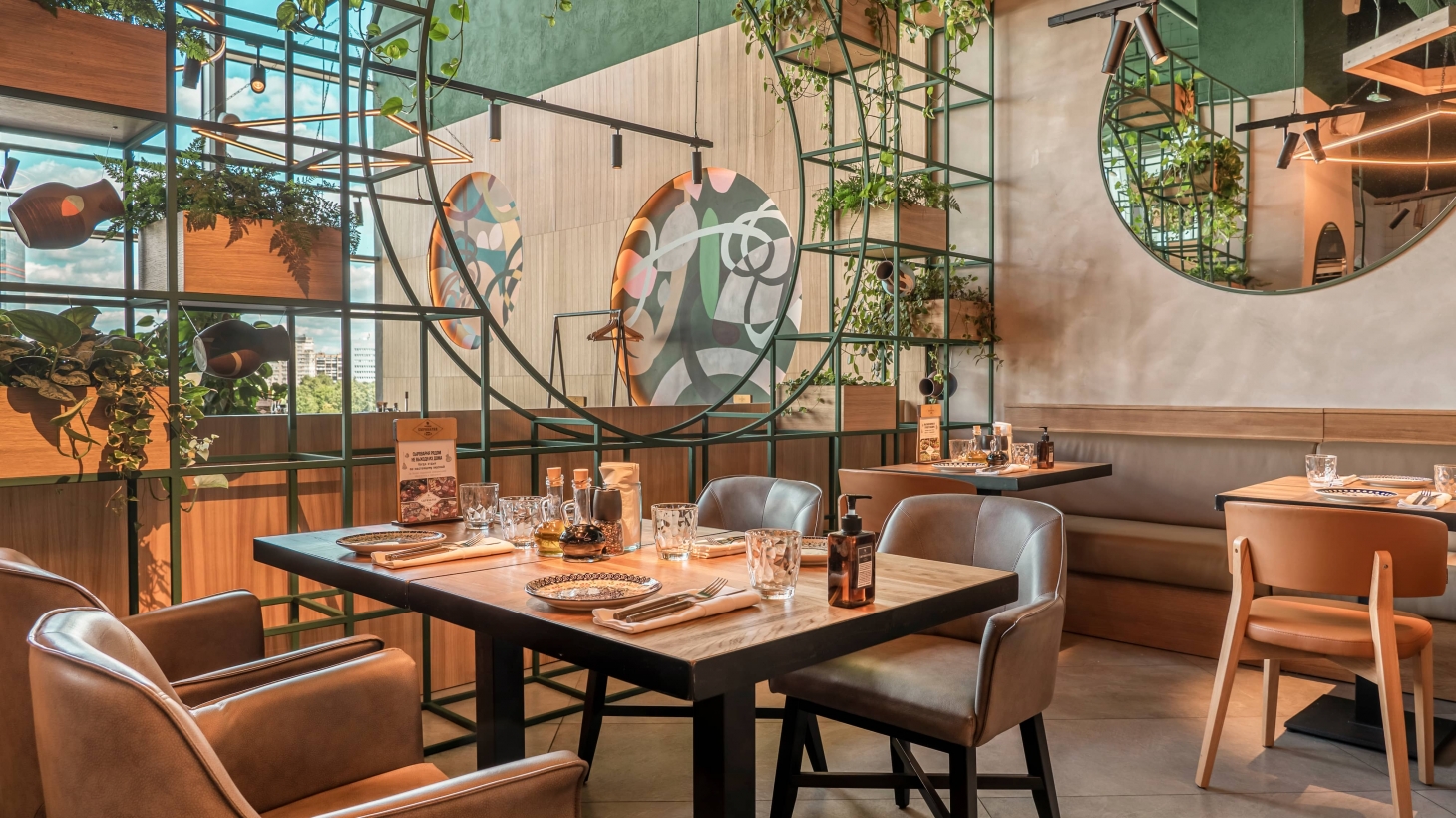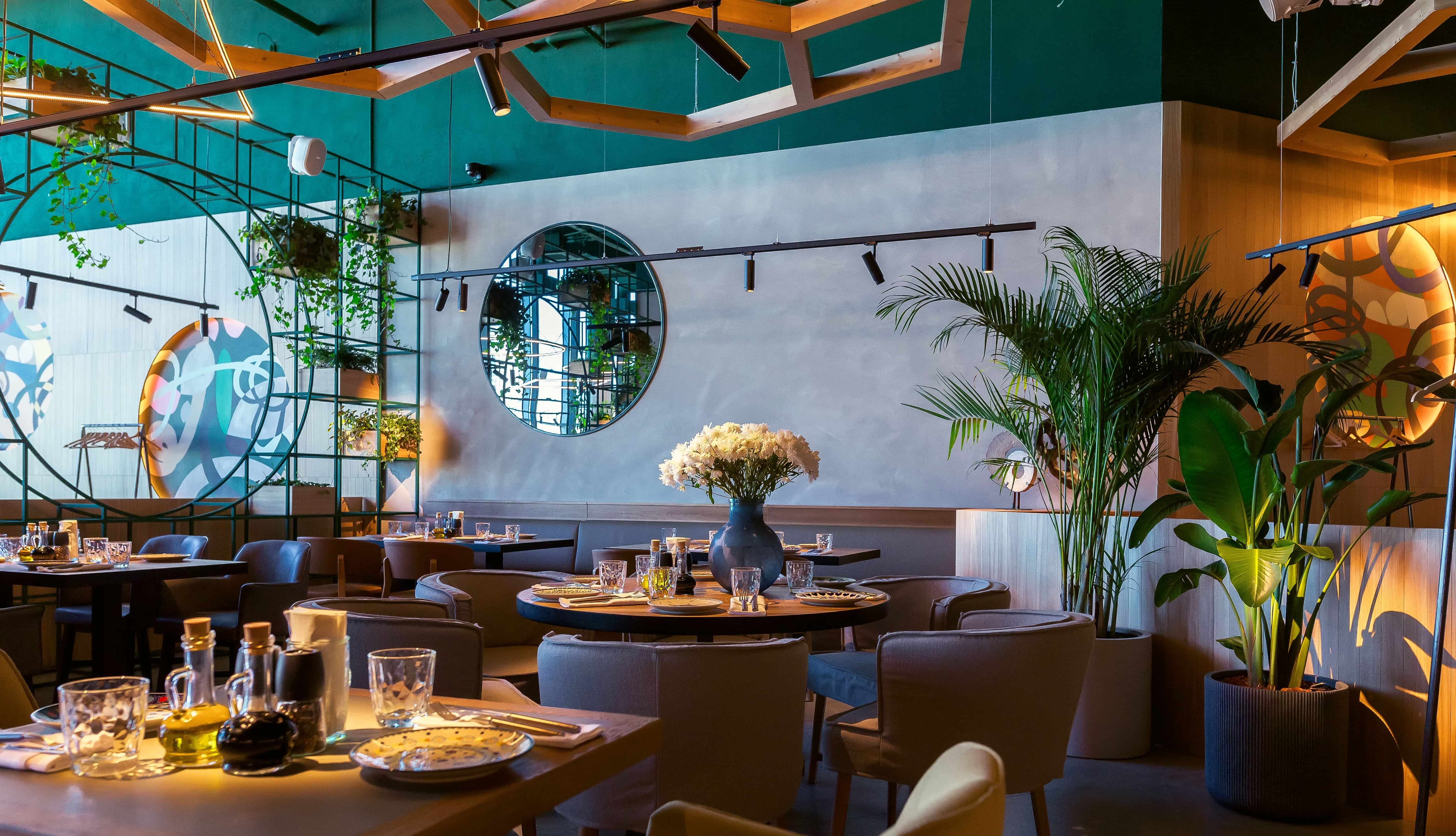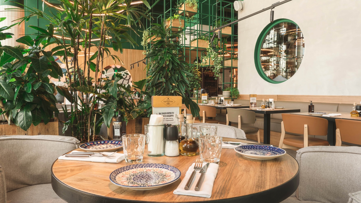 Arkady Novikov's family restaurant, opened in the spring of 2022, is located on the first floor of Aviapark shopping and entertainment centre. The menu includes a variety of pasta, pizza, cheese, meat, fish and grilled dishes. Breakfast is served in the mornings. Light colours and lots of greenery dominate the interior. The restaurant is flooded with natural light from the panoramic windows.