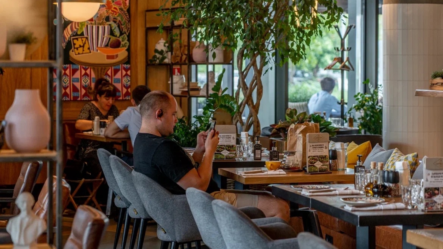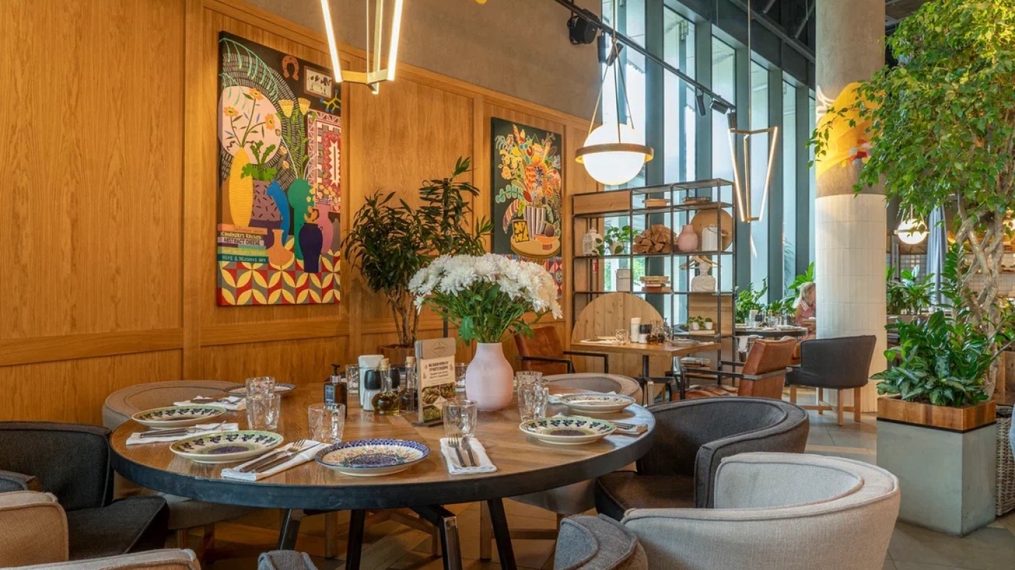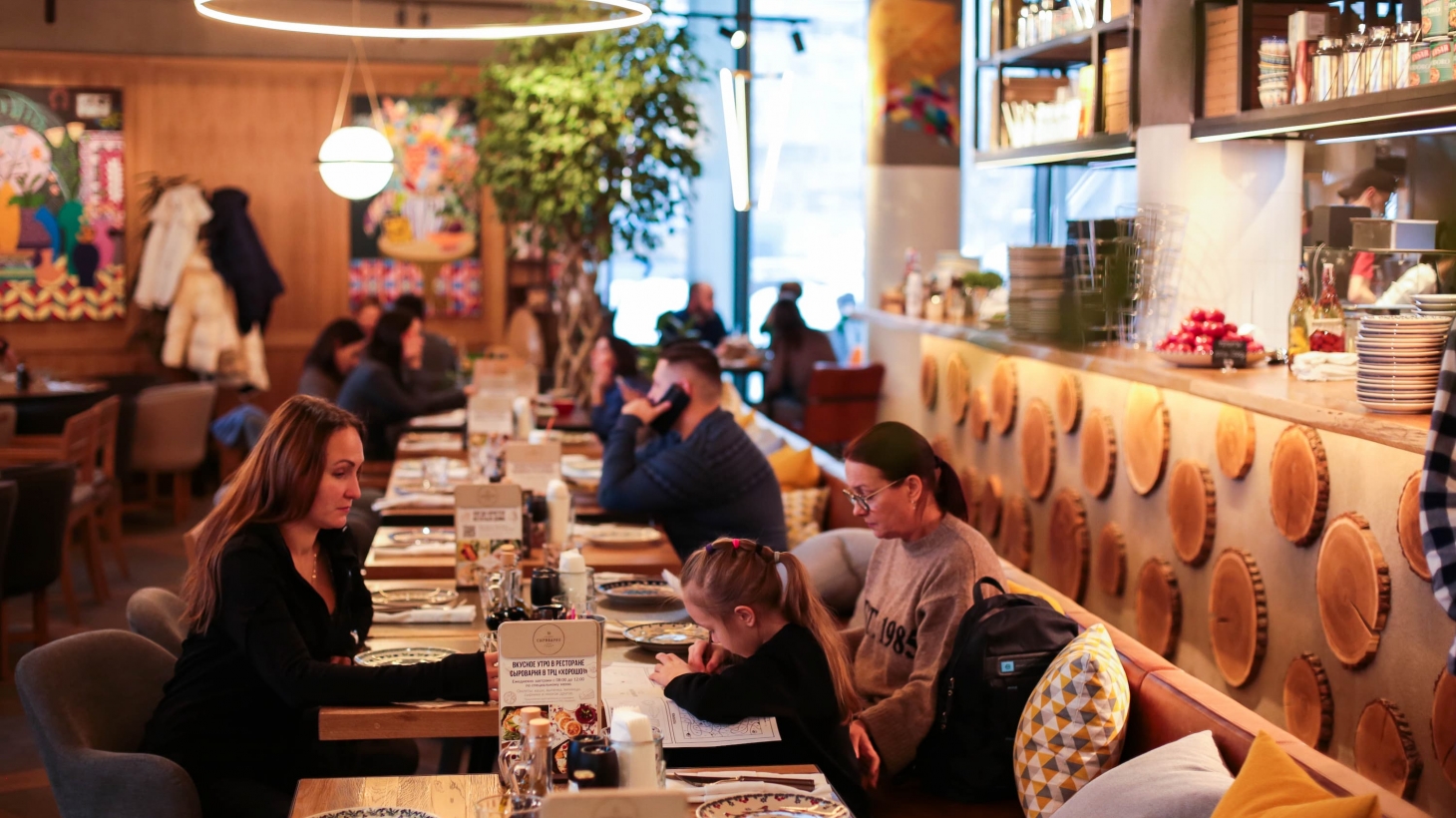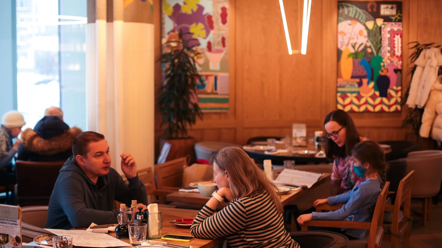 Arkady Novikov's family restaurant is located on the ground floor of the Khorosho! shopping centre. It occupies two loft-style rooms. Cheese and pastry showcases occupy the centre of the interior. The menu offers a variety of homemade pasta, pizza, cottage cheese and egg dishes, meat and fish dishes. Breakfast is also served every morning.