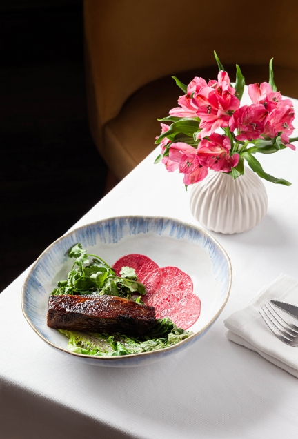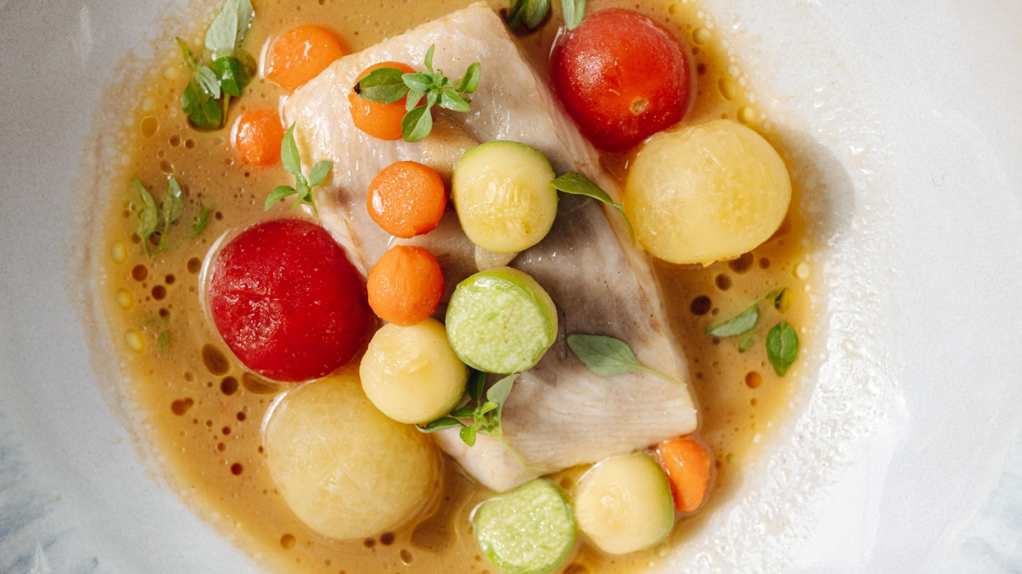 Гости флагманской «Сыроварни» также могут оценить мастерскую работу с томлением — излюбленной техникой Алексея Медведева, которая доведена до идеала в говяжьем ребре с арбузной редькой и цыпленке в бульоне с мини-овощами. Тема овощей продолжается в салатах: в дополнение к знаковым салатам с сыром, которыми славится бренд, в меню Chef’s появился изысканный салат с осьминогом и печеным картофелем, играющий на контрасте текстур, вкусов и ароматов.