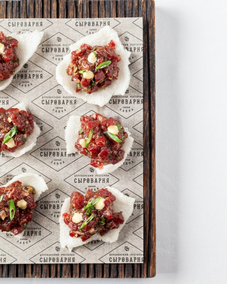 Помимо блюд, которые после дебюта во флагманской «Сыроварне» отправились покорять сердца гостей в разных уголках России и мира, в Chef’s остались эксклюзивные авторские позиции. Так, тартар на Большой Никитской готовят из молодого бычка и подают на рисовых чипсах — идеальная закуска на компанию.
