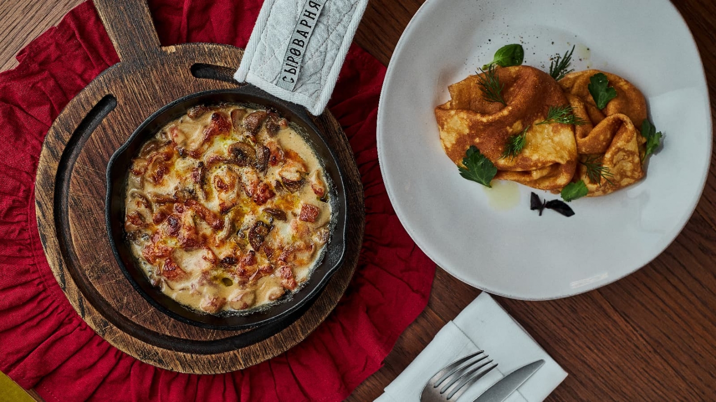 Есть блюда, которые не нуждаются в представлении. К ним относятся узнаваемые масленичные позиции, которые из года в год радуют гостей «Сыроварни»: блины с мясом и яйцом, со слабосоленым лососем и страчателлой, с тамбовским окороком и сыром чеддер. Секрет их популярности прост — бескомпромиссное качество ингредиентов и тонко расставленные акценты.
