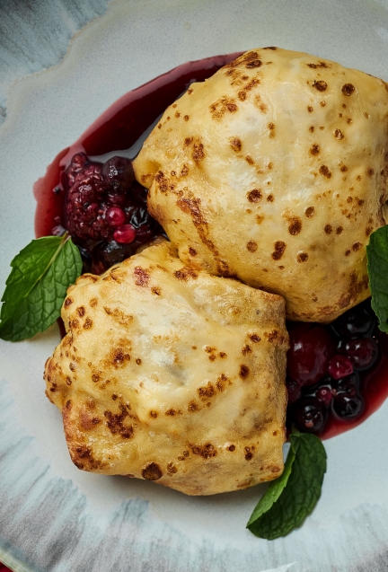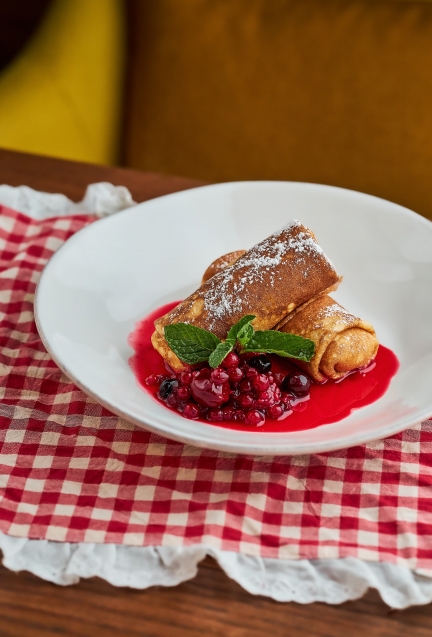Невозможно представить Масленицу без сладких блинов, среди которых оказалось сразу две новинки. Нежные творожные блины переносят в детство: начинка из творога, сметаны и сгущенки создают общую атмосферу тепла и уюта (словно блины испекла любимая бабушка), а ягодный соус расставляет финальные яркие акценты.