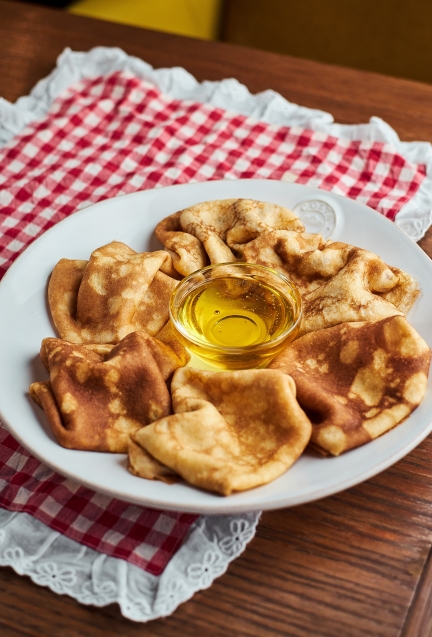 Открывают специальное предложение полдюжины идеальных блинов. Тонкие, кружевные, ароматные — как в детстве. С ними любой топпинг, будь то сметана, мед, варенье или сгущенное молоко, раскроет всю глубину вкуса. Это именно тот случай, когда чем проще, тем лучше.