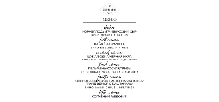 Приглашаем на сибирский этногастроужин в Сыроварне, который пройдет в 3 московских ресторанах — на Большой Никитской, в ТЦ «Хорошо» и на Новой Риге.